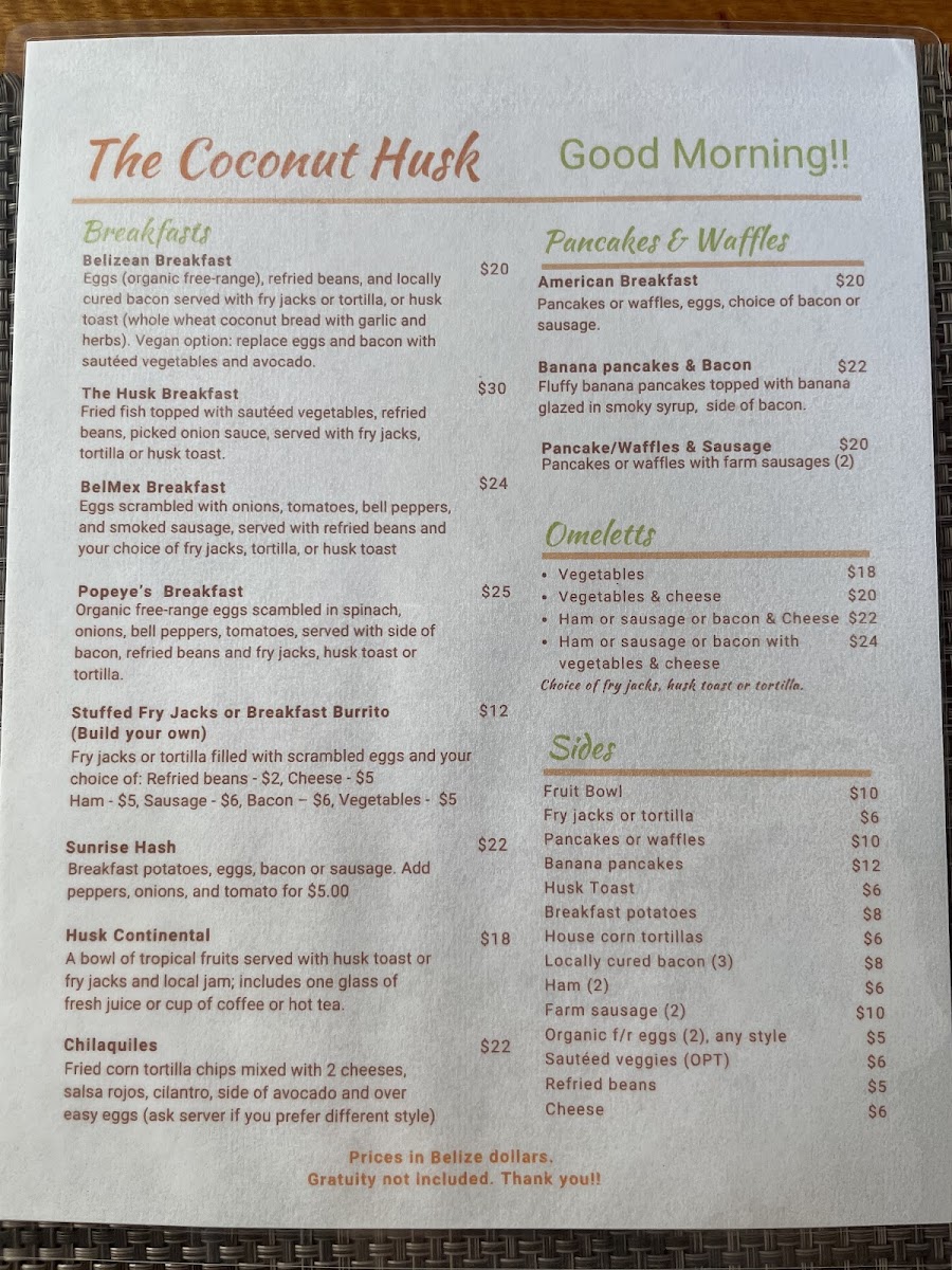 At The Coconut Husk Restaurant, superb food, a welcoming atmosphere, and beautiful views converge, setting a high bar in Hopkins. Whether you’re stopping by for breakfast or lunch, each dish promises to deliver an authentic taste of Belize that is both delicious and satisfying. Don’t miss out on this delightful culinary adventure—thank yourself later for indulging in the local delights!